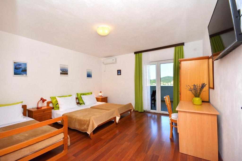 Апартаменты с балконом, откуда открывается вид на море. Также в числе удобств кухня с плитой, обеденной зоной и электрическим чайником.